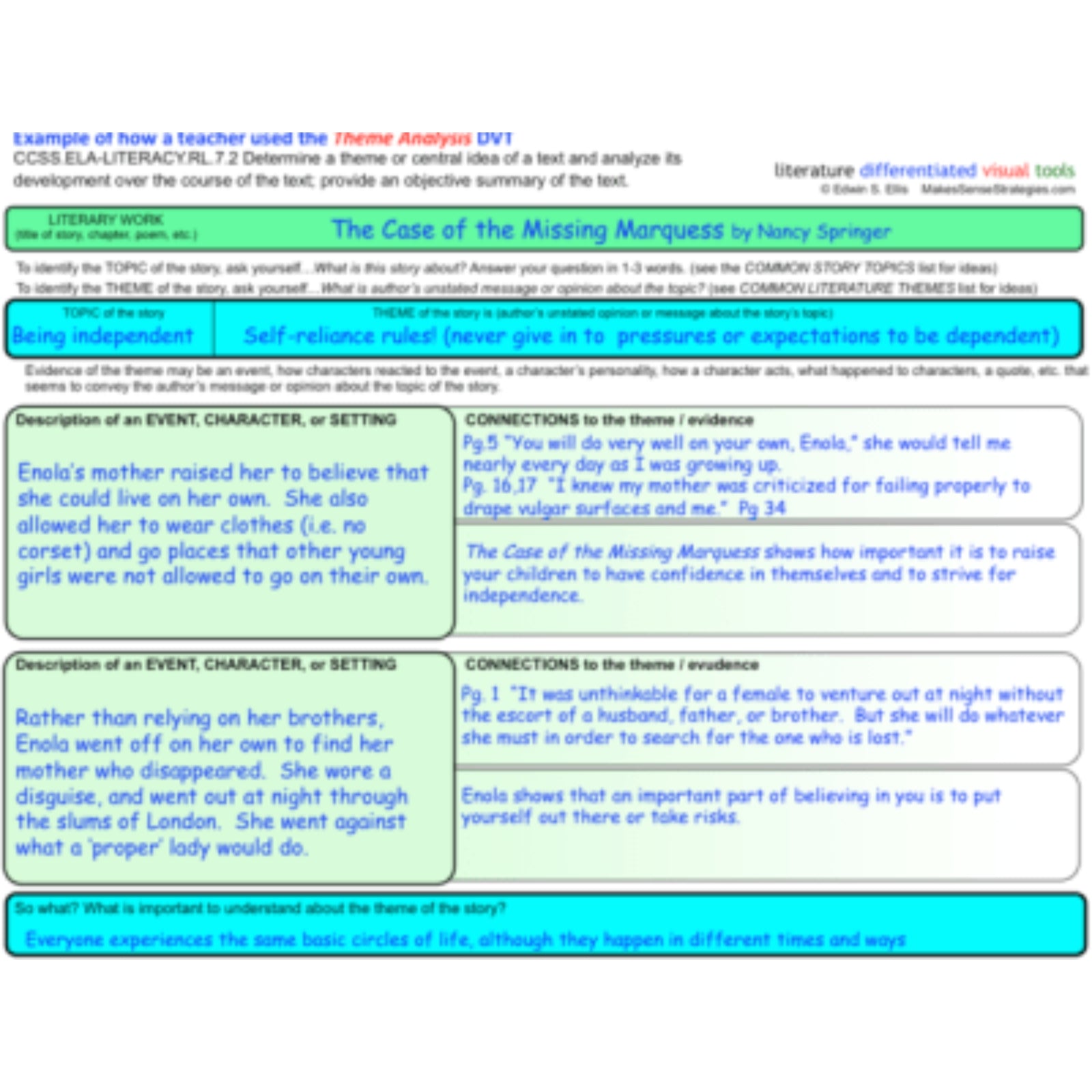 These visual tools are particularly useful when addressing literacy standards that are especially challenging to teach because the DVTs enable teachers to SEE how the complex standards can be addressed in relatively simple ways. The embedded prompts on the DVTs cue students to engage in specific thinking processes designed to facilitate their performance.